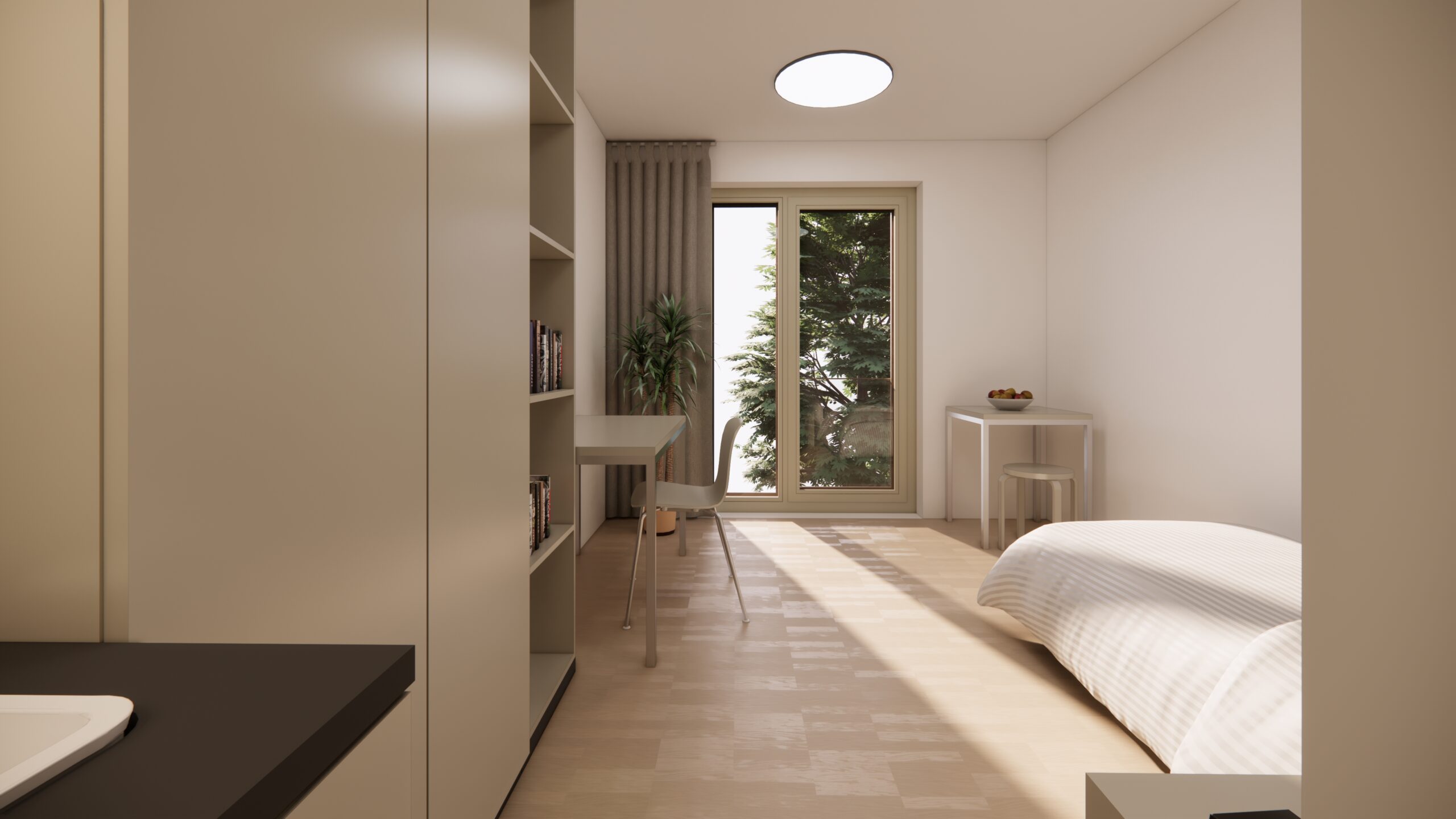 Im Rahmen einer von der IPS ausgelobten Konzeptstudie wurden kreative und zukunftsweisende Ideen für den Bau eines modernen Wohnheims für Anwärterinnen und Anwärter der Steuerverwaltung des Landes Sachsen-Anhalt gesucht. Ziel war es, eine Neubebauung zu entwickeln, die nicht nur den Anforderungen zeitgemäßen Wohnens gerecht wird, sondern auch einen nachhaltigen Beitrag zur städtebaulichen Entwicklung des Standortes leistet.